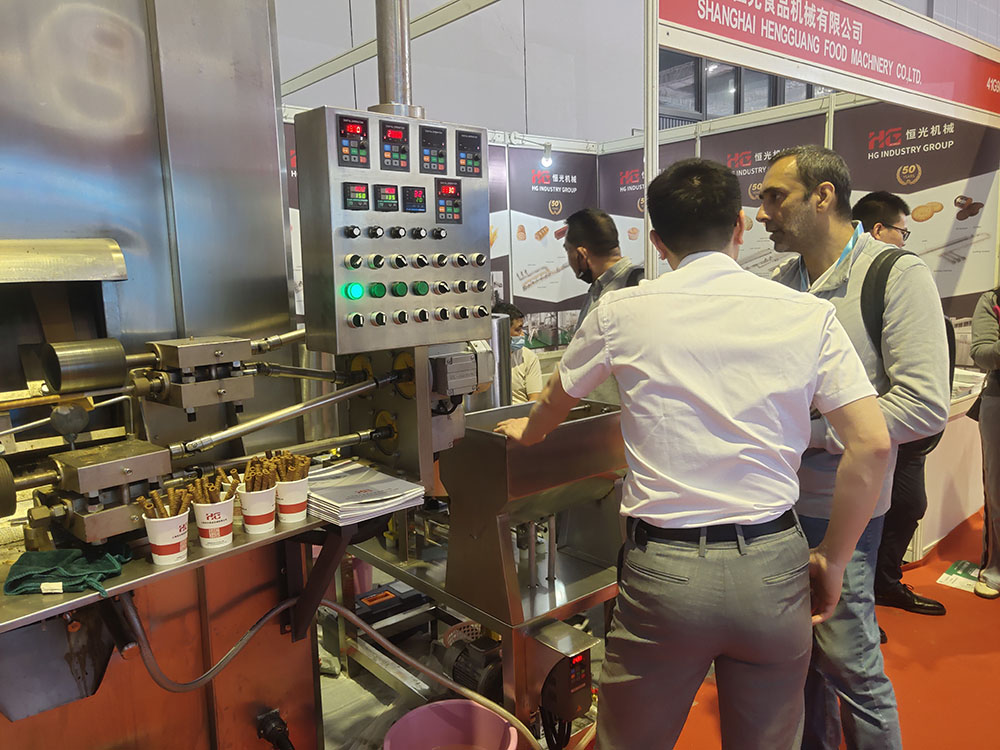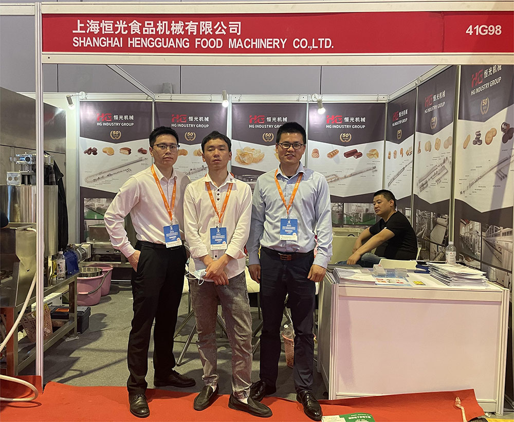 On May 22nd, the 25th China International Baking Exhibition commenced at the Shanghai National Exhibition and Convention Center, with over 2,200 food production industry manufacturers from both domestic and international backgrounds participating. Mr. Jiang, along with the sales and technical teams from Hengguang Food Machinery Company, attended the exhibition. At the booth, a pancake roll machine was in operation, attracting domestic and international visitors who stopped by for inquiries and resulted in numerous preliminary contacts and cooperation intentions. During our interactions with the visitors, we also gained insights into the innovation and development of the food machinery industry, providing new perspectives for our company's innovation and research and laying a solid foundation for future cooperation.