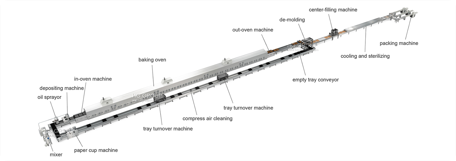 Muffin, Cup Cake, and Center Filled Cake Production Line Overview