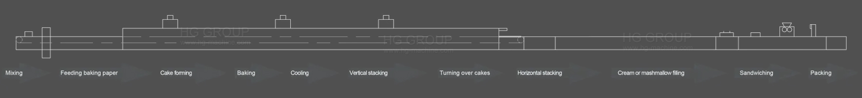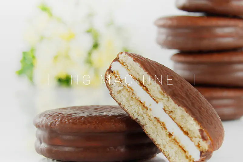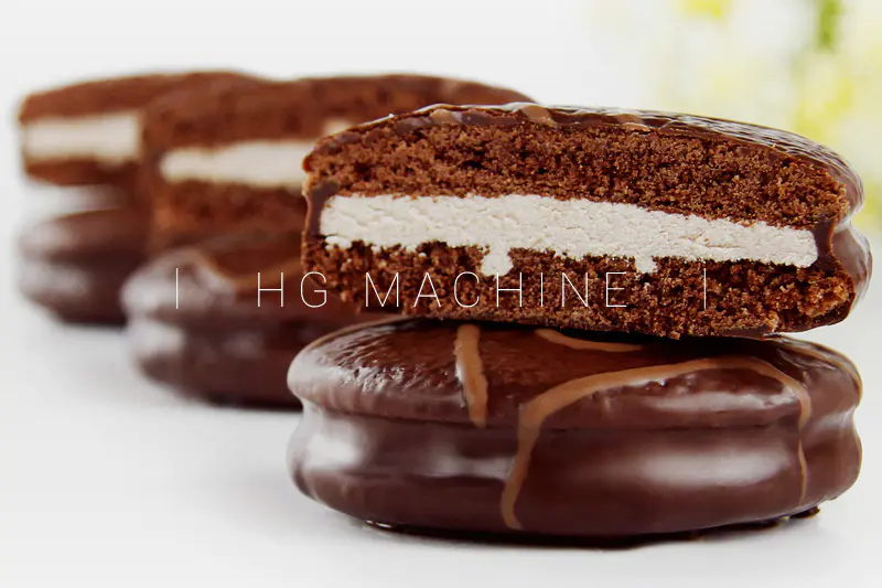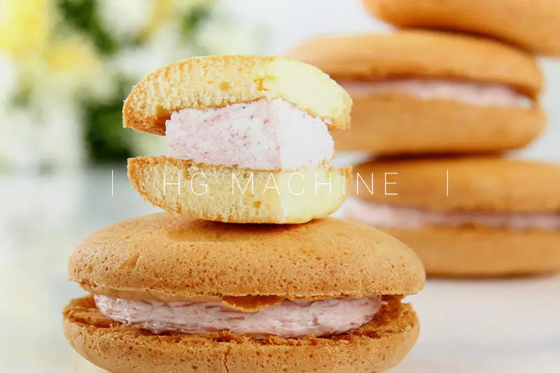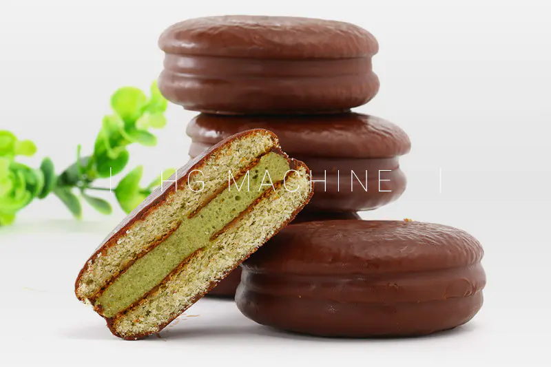 The fully automatic sandwich cake production line uses eggs and flour as the main raw materials. You can get the delicious original chocolate pies and strawberry pies, which are deeply welcomed by consumers, through mixing, forming, baking, cooling, vertical stacking, turning over, horizontal stacking, cream filling, sandwiching, and packing. Some characteristics of this manufacturing line: high degree of automation, stable running, high efficiency, low labor costs, easy operation, and long shelf life of products.