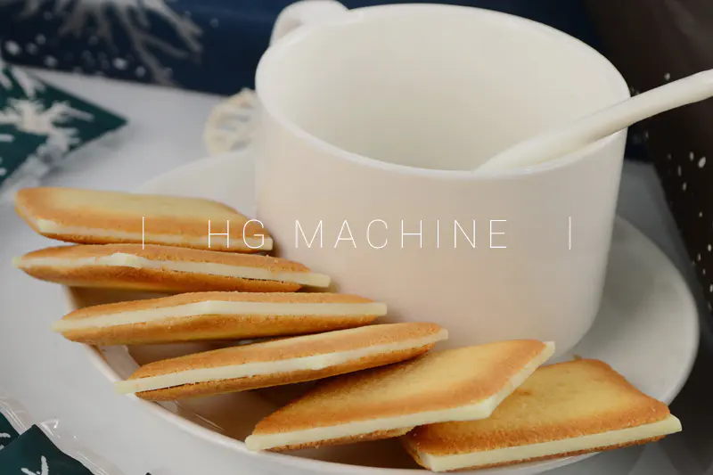 The products of White Lover cookies series are very popular in Japan because of their particular shape and crispy taste. Now, HG Group introduces the mature Japanese manufacturing technology and advanced manufacturing experience to our machines. What's more, HG improves it with domestic customers' demands and then designed this fully automatic sandwich thin cookies production line. Our professional team devoted itself to optimizing the overall arrangement: from material loading to forming, baking, and filling. The whole process is entirely automated with stable running. We also supply high-quality service to ensure healthy and safe production.