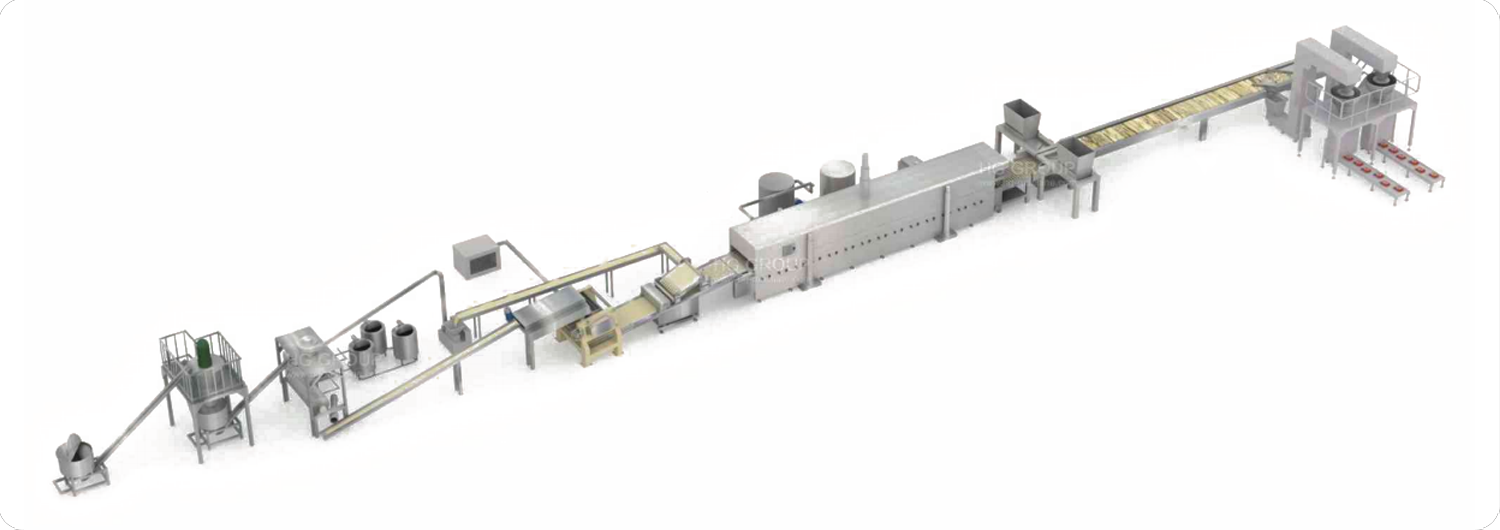 - Customizable configurations: The line can be customized based on the desired product characteristics, such as chip size, flavor layering, and texture, offering high versatility for snack manufacturers.